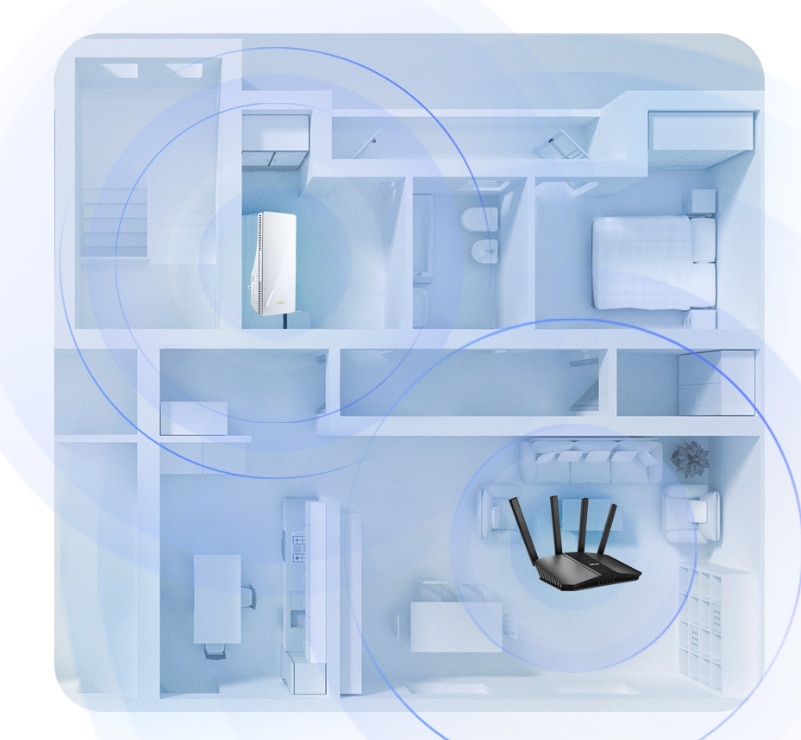 Tehnologia ASUS AiMesh va permite sa utilizati cu usurinta RP-BE58 impreuna cu un alt router compatibil AiMesh pentru a extinde acoperirea retelei WiFi. De asemenea, puteti aplica toate functiile routerelor ASUS conectate la intreaga retea mesh.