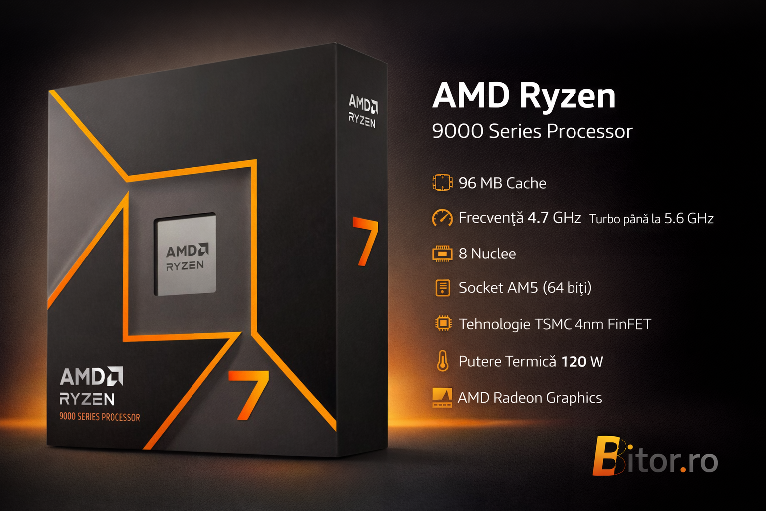 Tehnologii suportate: AMD 3D V‑Cache, Precision Boost 2, Precision Boost Overdrive, AMD EXPO, AMD Ryzen Master, AMD Smart Access Memory