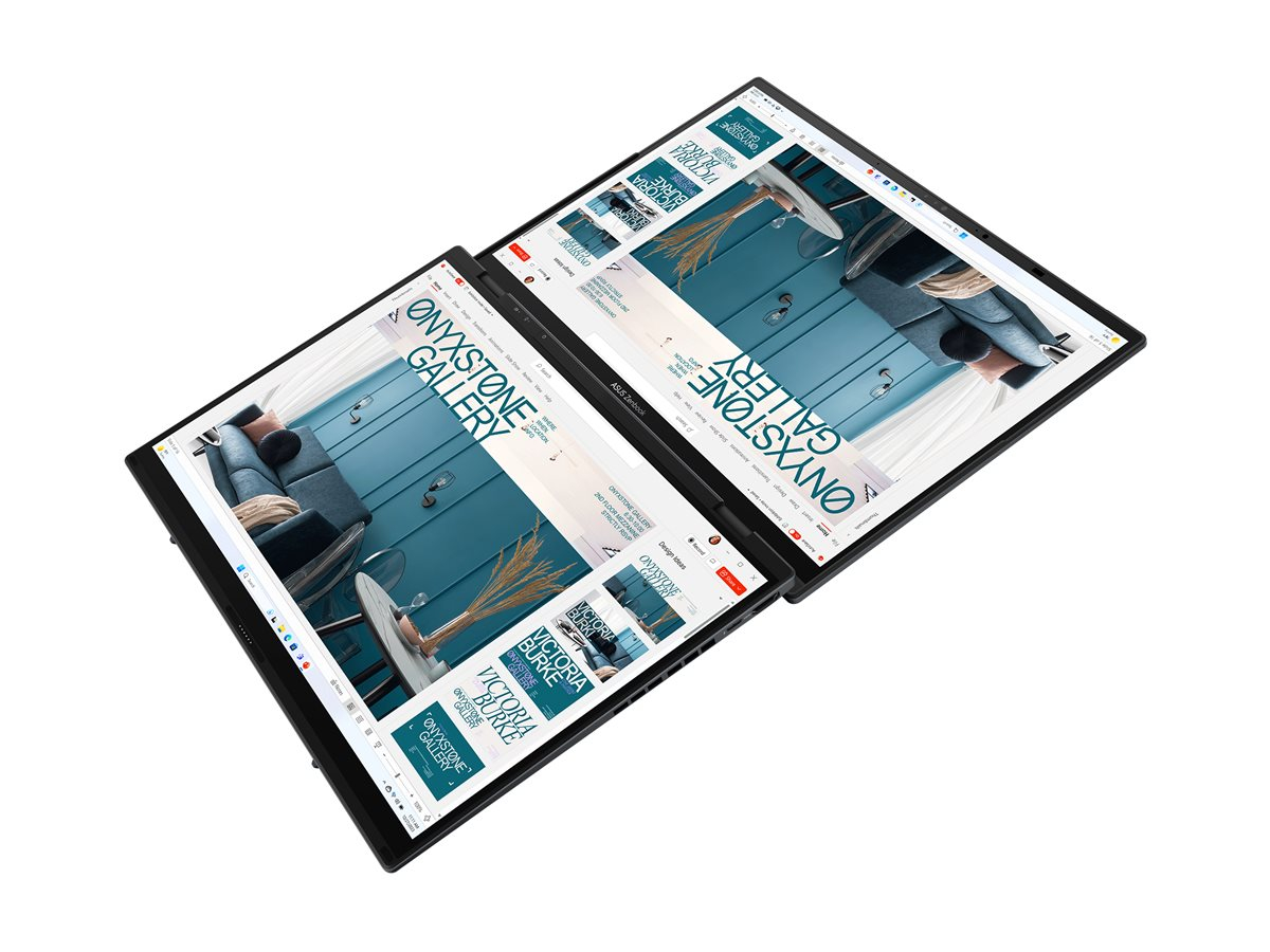 ASUS Zenbook DUO este un laptop revolutionar cu doua ecrane duble, cu doua ecrane tactile OLED de dimensiuni mari, tastatura detasabila de dimensiuni mari si kickstand incorporat, - combinand in mod expert versatilitatea multitasking-ului cu o mobilitate superba. Cu cele doua ecrane OLED 3K de 14 inchi, cu o frecventa de 120 Hz, va puteti extinde instantaneu spatiul de lucru pana la 19,8 inchi. Performanta remarcabila este asigurata de un procesor Intel® Core™ Ultra 9 cu AI si 32 GB de memorie LPDDR5x, plus un SSD PCIe® 4.0 de pana la 2 TB. Impreuna cu un software inteligent dedicat, un control intuitiv prin gesturi si o baterie cu durata de viata imbunatatita de 75 Wh, Zenbook DUO, usor de utilizat, maximizeaza productivitatea, fara complicatii. Come on — Let’s DUO it.