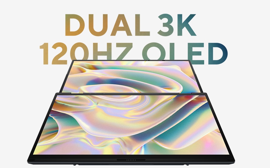 Cele doua ecrane tactile ASUS Lumina OLED touch de 14 inchi 3K (2880 x 1800) in format 16:10 iti maresc perspectivele, cu o luminozitate de pana la 500 nits si un raport ecran/corp de 91%.