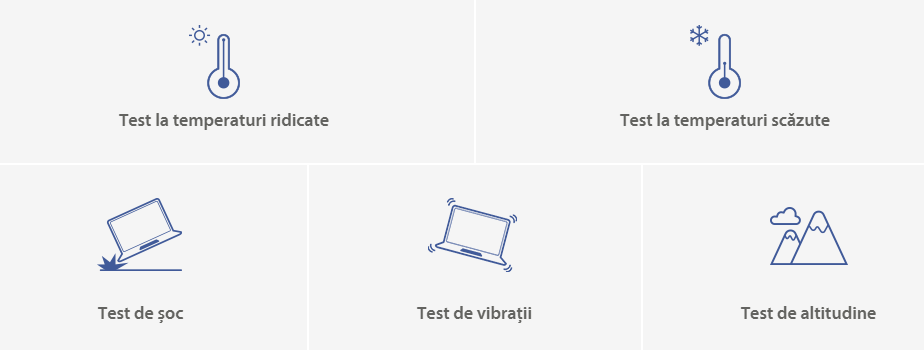 Laptopurile de consum ASUS indeplinesc standardul militar ultra-exigent MIL-STD 810H pentru fiabilitate si durabilitate, fiind supuse unui regim de testare extrem de dur care include teste extinse pentru functionarea in medii dificile. Acesti factori contribuie, de asemenea, la imbunatatirea longevitatii laptopurilor si, prin urmare, a durabilitatii acestora, astfel incat sa puteti lucra, calatori sau va puteti relaxa cu increderea ca laptopul ASUS este pregatit pentru lumea reala - astazi si mult timp in viitor.