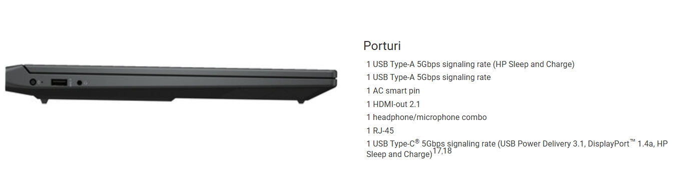 Alte Optiuni: Tastatură iluminată Tastatură numerică HP Fast Charge Touchpad multi‑atingere DC Dimming Micro‑Edge Display