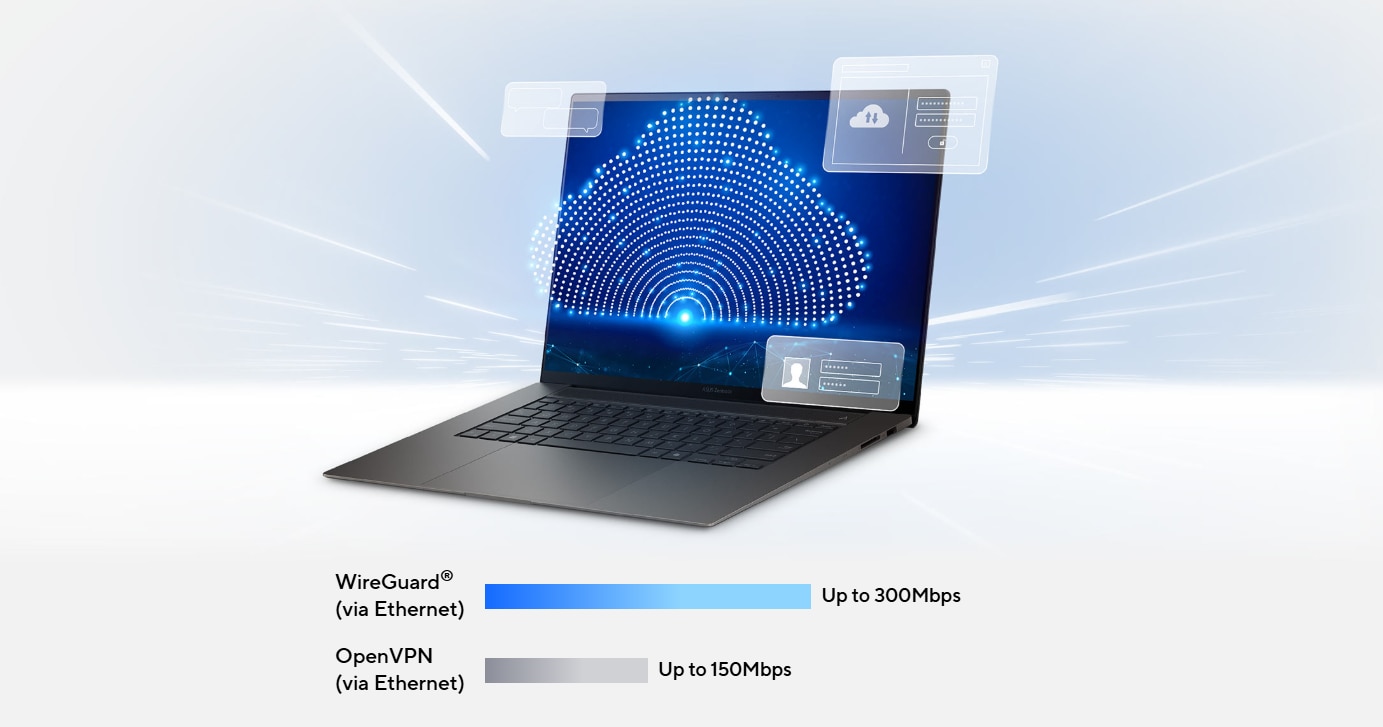 Bucurati-va de navigare sigura, confidentialitate a datelor, acces la distanta – functiile extinse ASUS VPN se ocupa de toate acestea. RT-BE55 accepta protocoale VPN versatile, inclusiv WireGguard® de ultima generatie, pentru viteze fulgeratoare si performante optime.