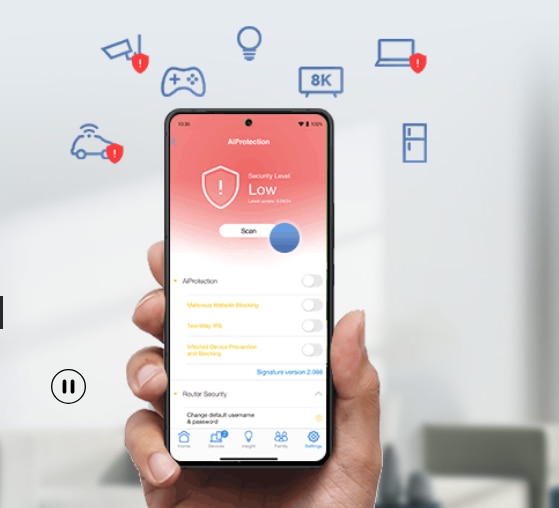 Intr-o lume conectata, reteaua dvs. de acasa este poarta de acces catre viata dvs. digitala. Obtineti vizibilitate si control complet asupra retelei dvs. de acasa, aparati-va impotriva amenintarilor emergente si asigurati-va o protectie fara cusur pentru toate dispozitivele conectate si datele personale. ASUS Network Security va ofera liniste sufleteasca cu protectie robusta pentru router, protectie pentru dispozitive si conexiuni sigure.