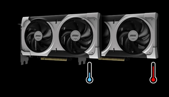 Ventilatoarele se opresc complet atunci cand temperaturile sunt relativ scazute, eliminand tot zgomotul atunci cand nu este nevoie de racire activa. Ventilatoarele vor incepe automat sa se roteasca din nou atunci cand caldura este activata in timpul jocurilor.