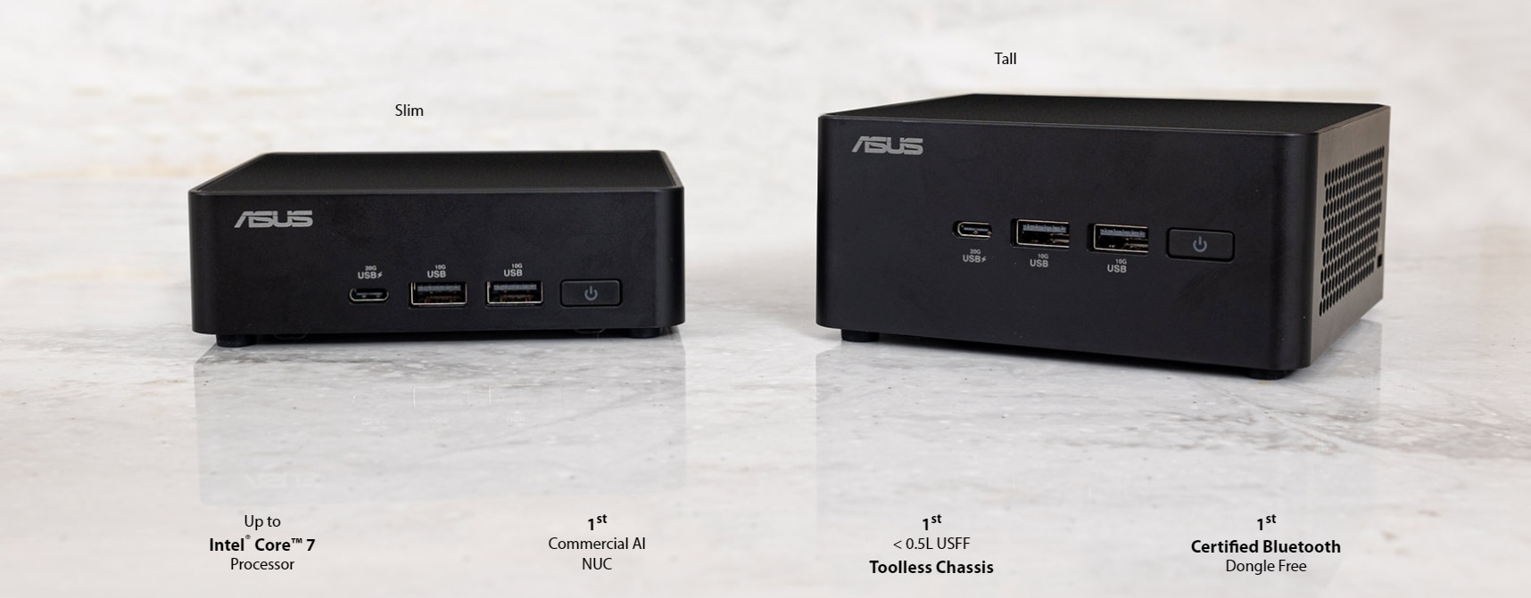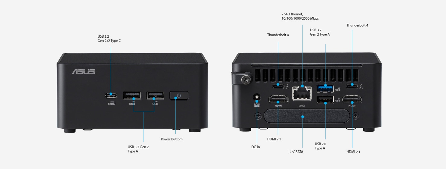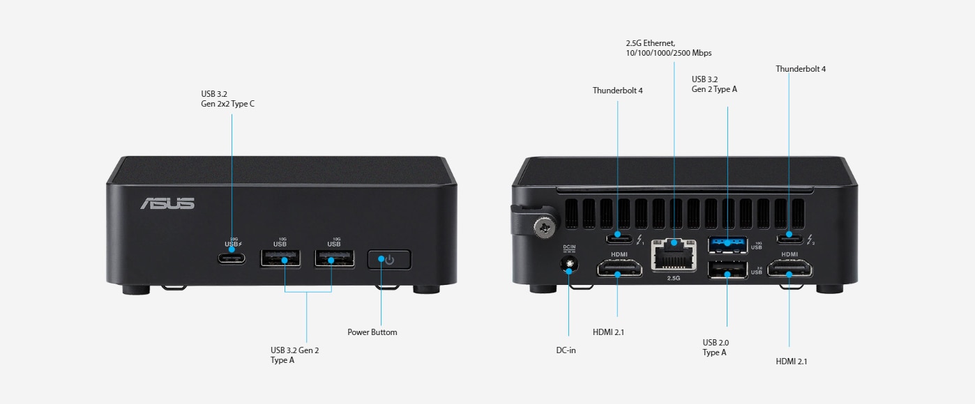 Dezvoltate prin intermediul unui parteneriat intre ASUS si Intel, liniile de produse ASUS NUC se ancoreaza pe furnizarea de performante fara compromisuri in cele mai mici factori de forma, sustinute de cea mai buna calitate si fiabilitate din industrie, design modular inovator, optiuni extinse de durata de viata, solutii de racire inteligente si capabilitati avansate de inteligenta artificiala. Versatilitatea produselor straluceste printr-o serie de configuratii care raspund la diversele nevoi ale utilizatorilor, de la dezvoltatori, la utilizatori puternici si pana la utilizarea casnica ocazionala. Pozitionat ca fiind alegerea preferata pentru o varietate de aplicatii de afaceri, industrii verticale si utilizatori obisnuiti, ASUS NUC combina performantele exceptionale cu caracteristici esentiale, avand ca scop modelarea urmatoarei generatii de experiente PC.