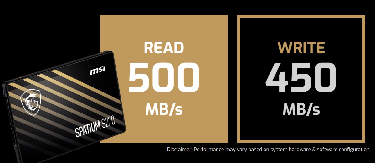 Optimizat pentru interfata SATA III, SSD-ul SPATIUM S270 atinge viteze de citire/scriere de pana la 500/450 MB/s, permitand transferul rapid de date si scurtarea timpilor de incarcare a jocurilor.