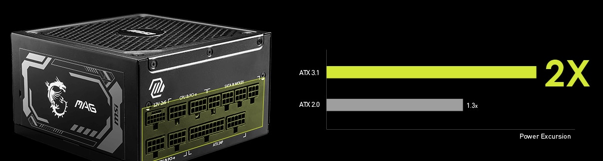 Compatibil cu ATX 3.1 Sursa de alimentare pentru jocuri poate suporta pana la 2x variatii totale de putere si 3x variatii de putere GPU, ramanand stabila atunci cand este asociata cu placi grafice de inalta performanta. |