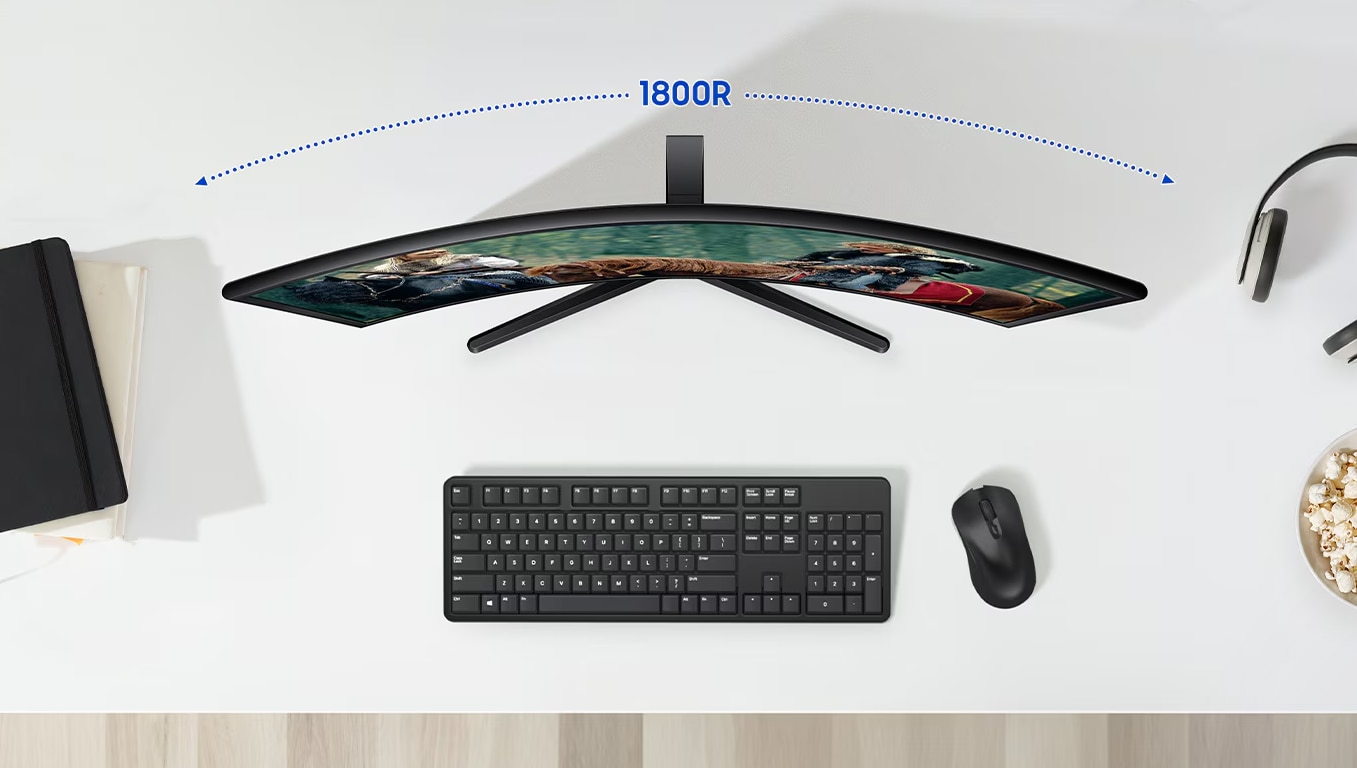 Da, monitorul oferă rezoluție Full HD, panou VA, rată de refresh 100Hz și curbura 1800R, fiind ideal pentru birou, multimedia și utilizare generală.